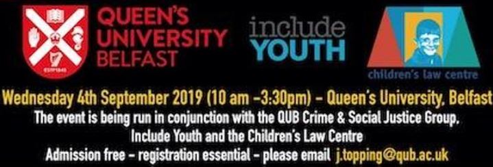 This is a joint event between the Crime and Social Justice Group at Queen's, Include Youth and the Children's Law Centre.